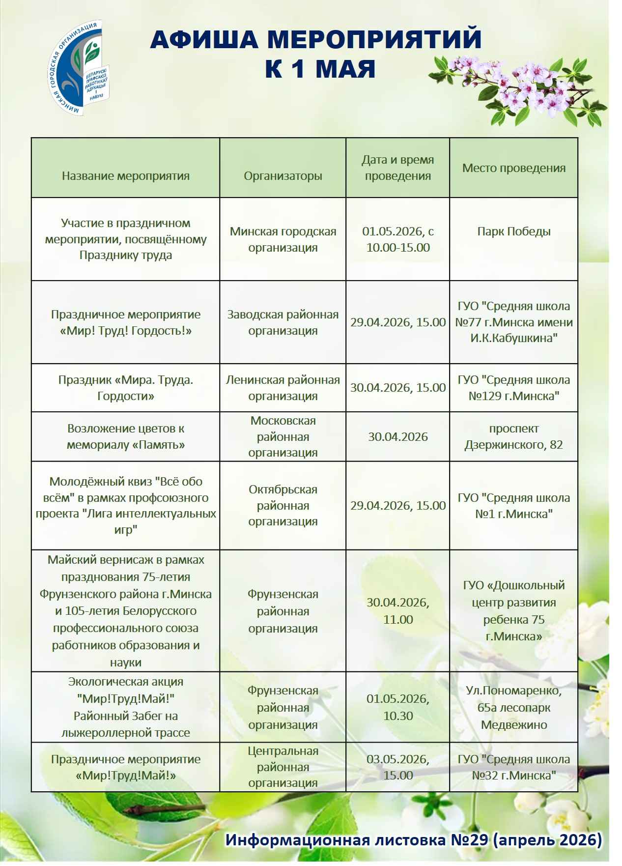Добро пожаловать на наш сайт! Вас приветствует команда Минской городской организации профессионального союза работников образования и науки. Это будет полезный ресурс, который предоставит вам актуальную информацию о нашей организации, наших целях и задачах, а также о наших достижениях и перспективах. Мы надеемся, что наш сайт станет для вас полезным и поможет вам оставаться в курсе событий, происходящих в нашей столичной профессиональной среде. |