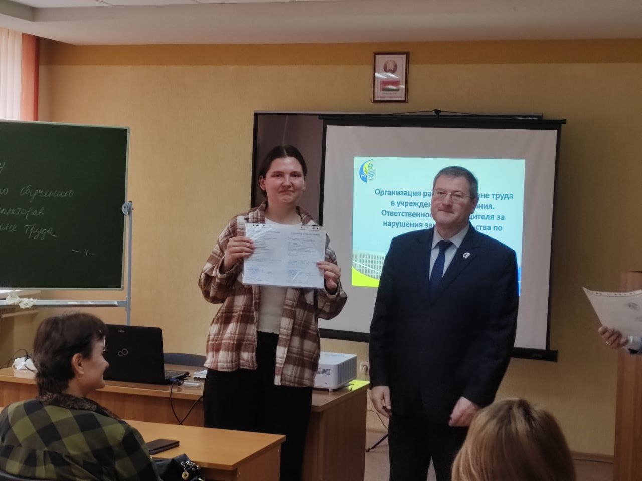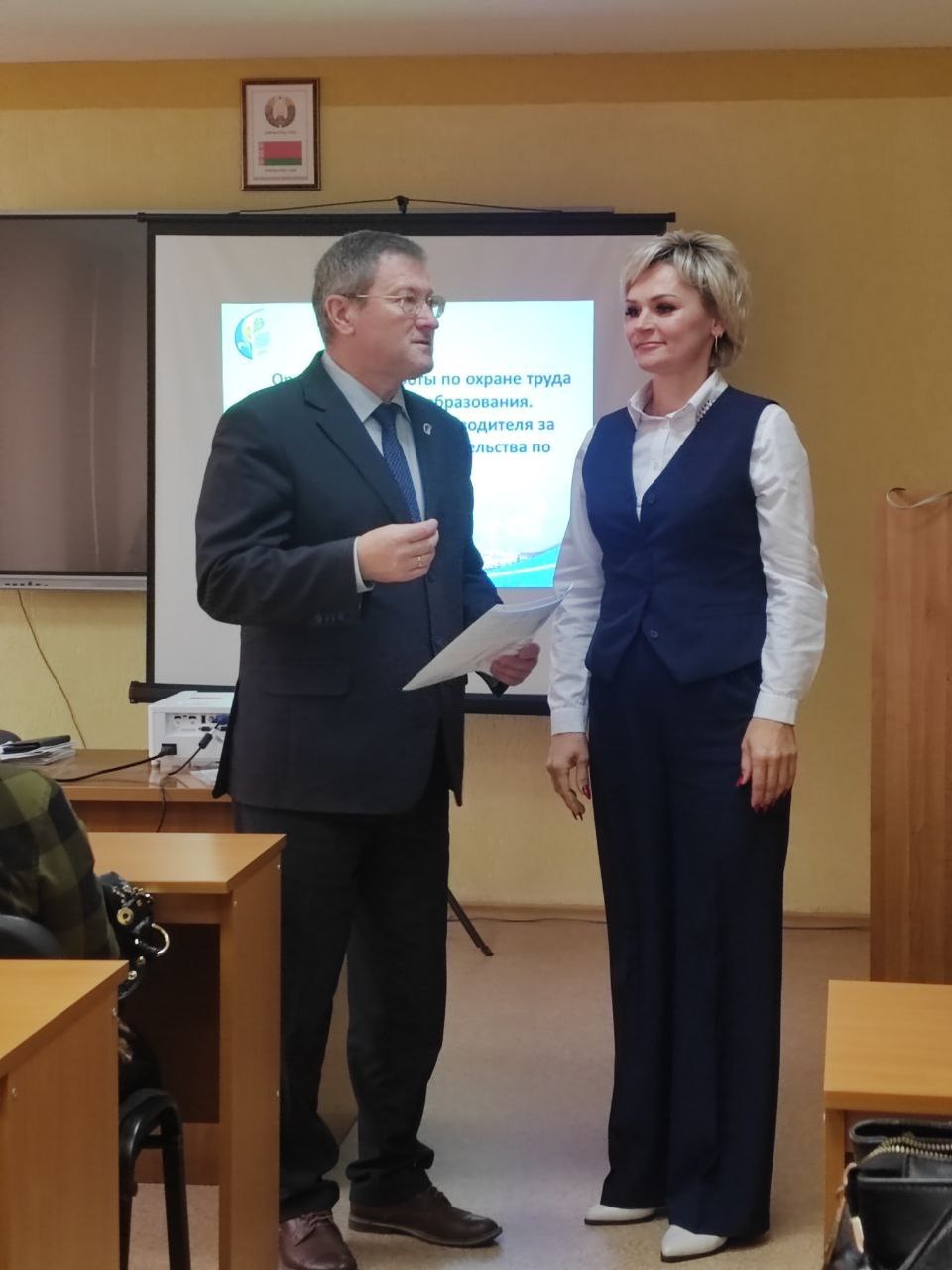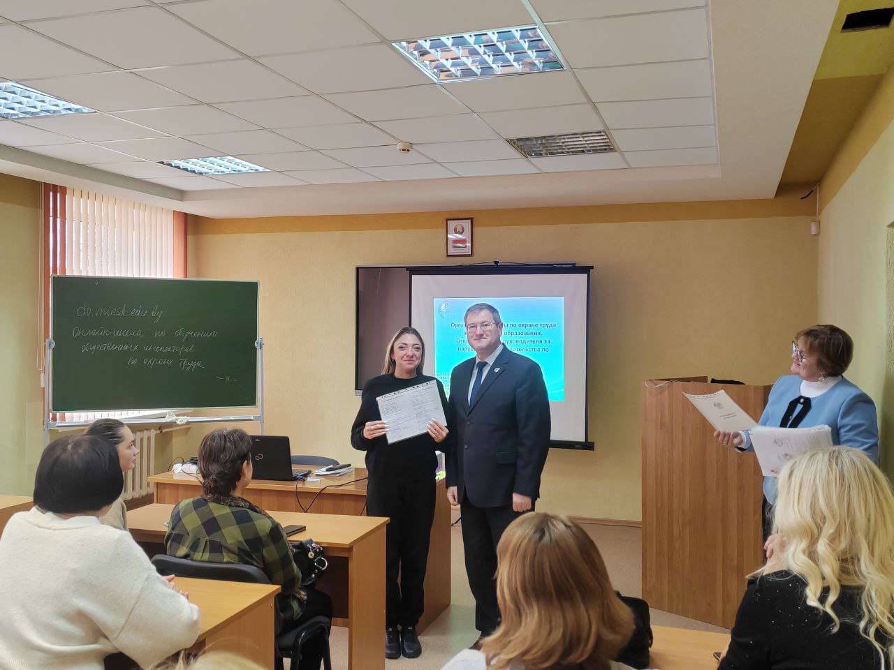 Минской городской организации Профсоюза и ГУО «Минский городской институт развития образования» за реализацию проекта «Школа общественного инспектора по охране труда».