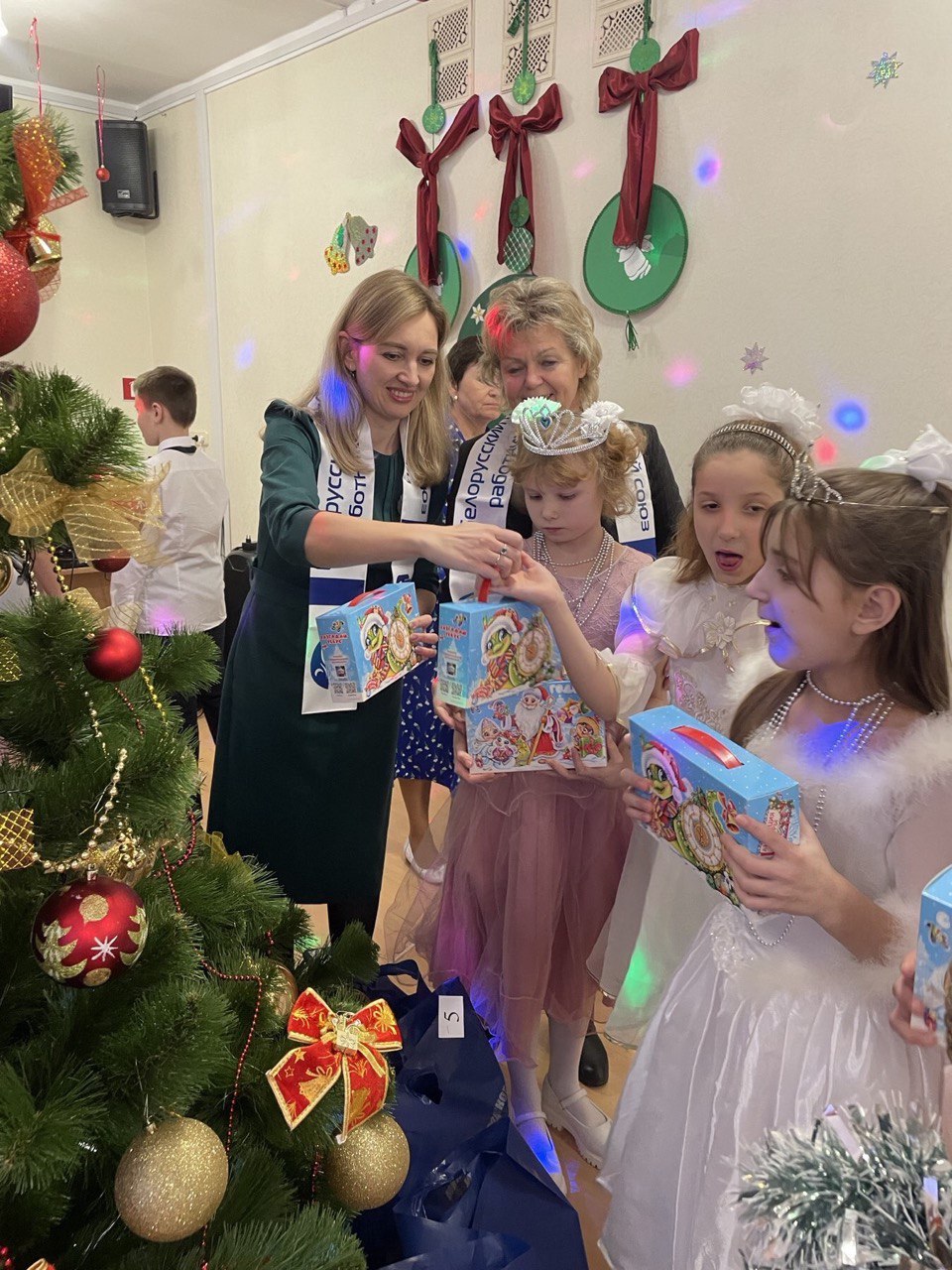 Ребятам вручили сладкие новогодние подарки, поздравили с наступающим Новым годом.