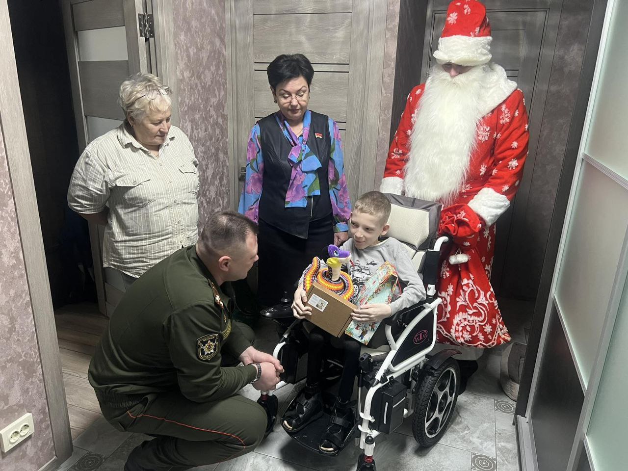 В рамках акций "Наши дети" и "Профсоюзы - детям" военный комиссар Фрунзенского района полковник Евгений Брацков и председатель Фрунзенской районной г.Минска организации Профсоюза Татьяна Берестевич присоединились к марафону добрых дел и поздравили с наступающим Новым годом и Рождеством учащегося средней школы № 41 Довгалёва Кирилла и его семью.