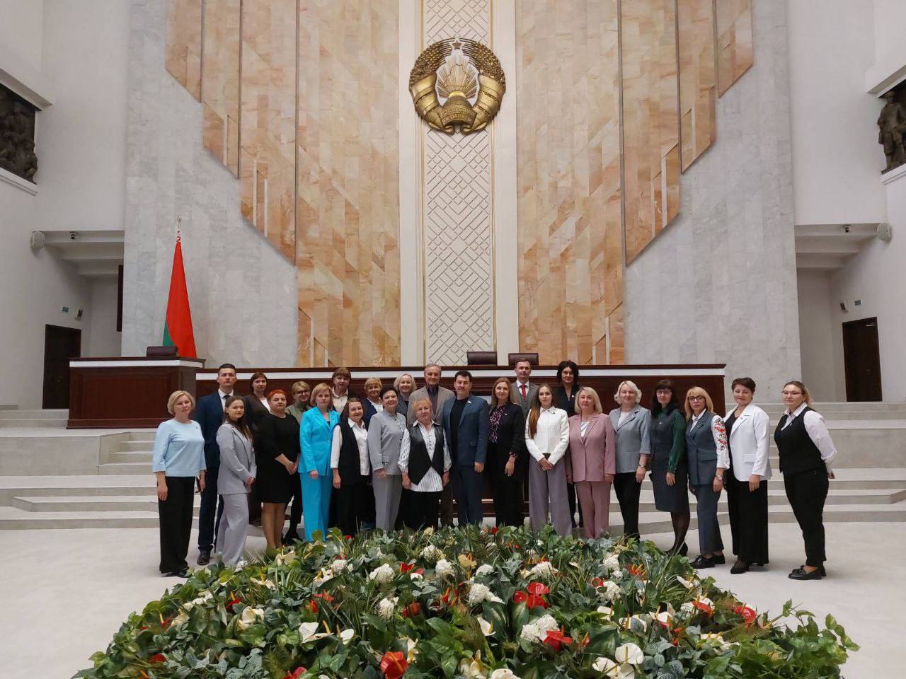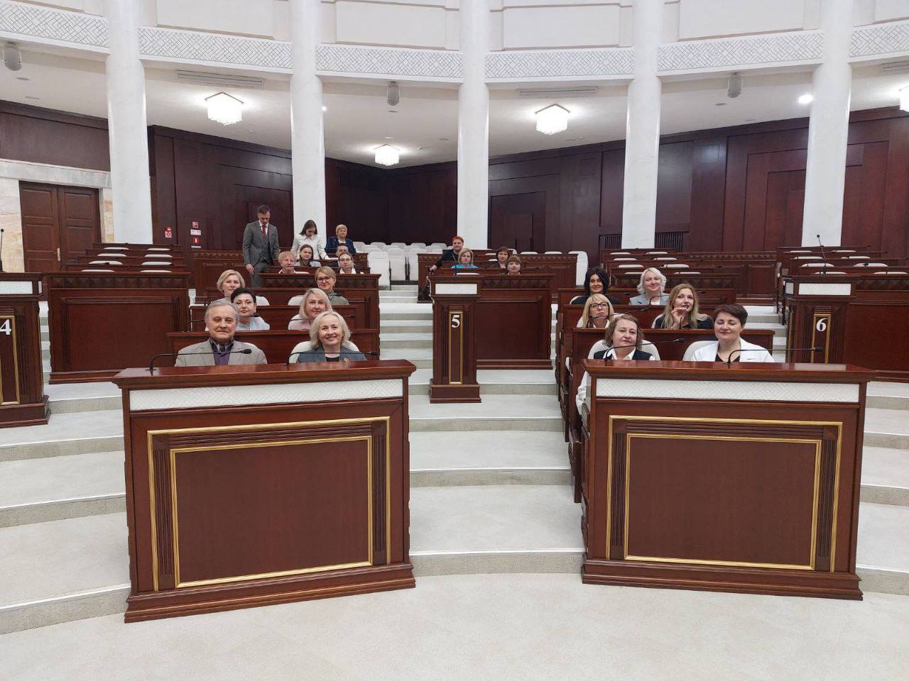 Гости Дома Правительства с большим интересом ознакомились с тематической экспозицией, посвященной истории белорусского парламентаризма, и посетили Овальный зал, где проходят заседания Палаты представителей. Возможность своими глазами увидеть место, где принимаются важные решения, стало особенно запоминающимся моментом для профактивистов.