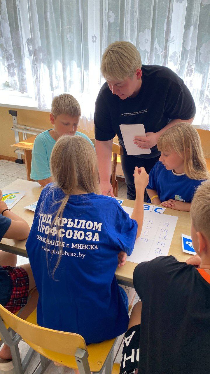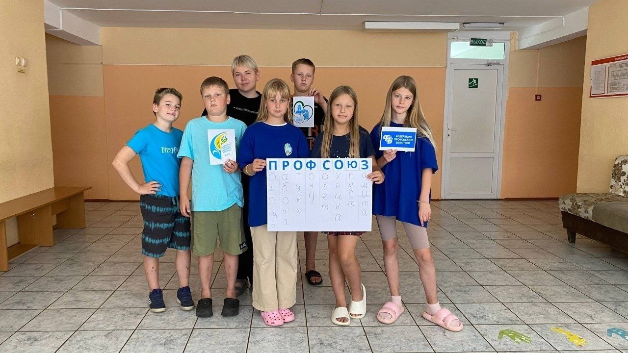 Лето продолжается в стационарном воспитательно-оздоровительном лагере "Лесной" член Молодёжного Совета Ленинской районной г.Минска организации Профсоюза образования Татьяна Лабанова провела интеллектуальную игру "ПрофСоюзное Слово".