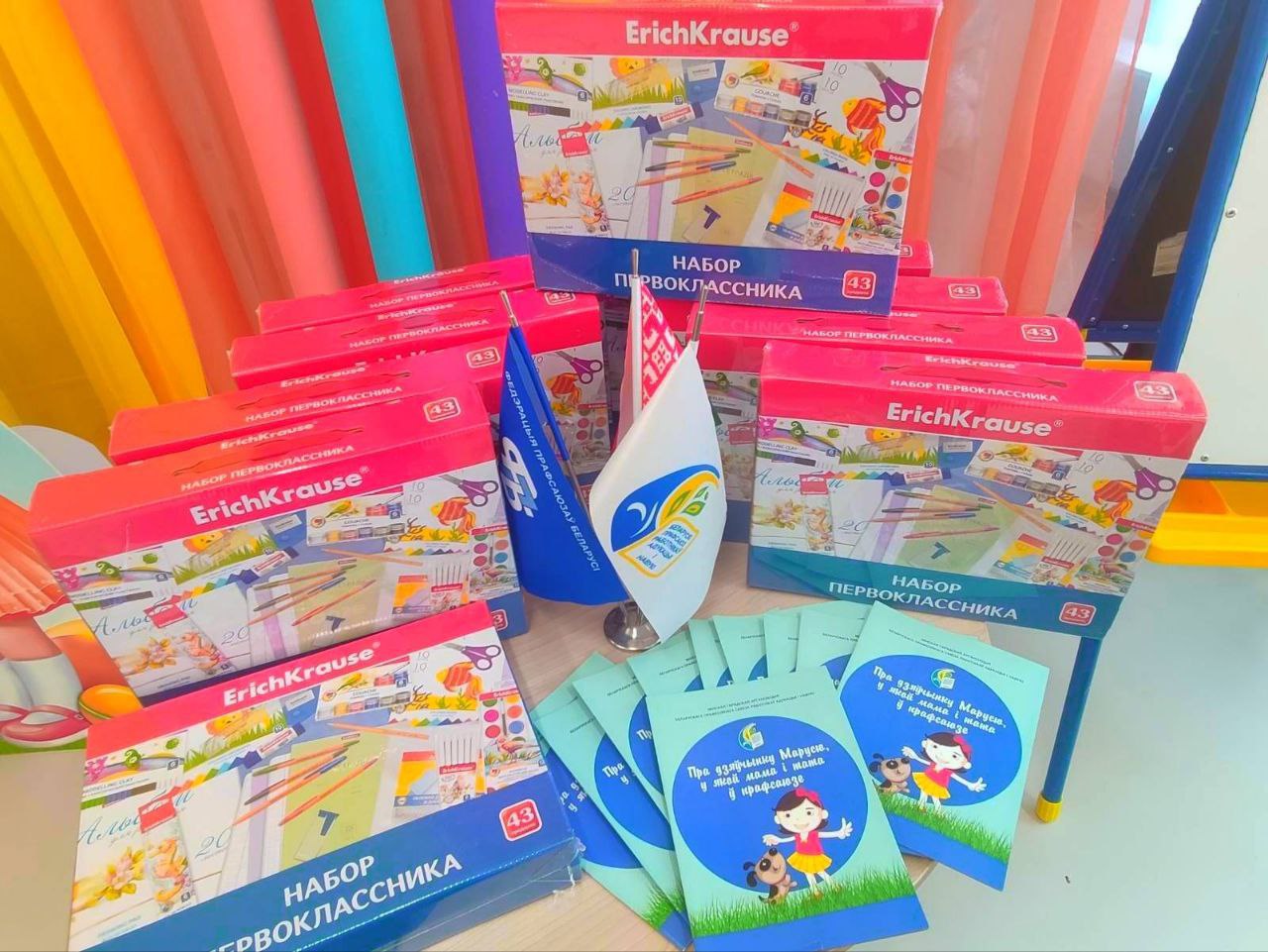 Первоклассникам из многодетных и неполных семей, у которых родители работают в системе образования, были подарены наборы с канцелярскими принадлежностями.