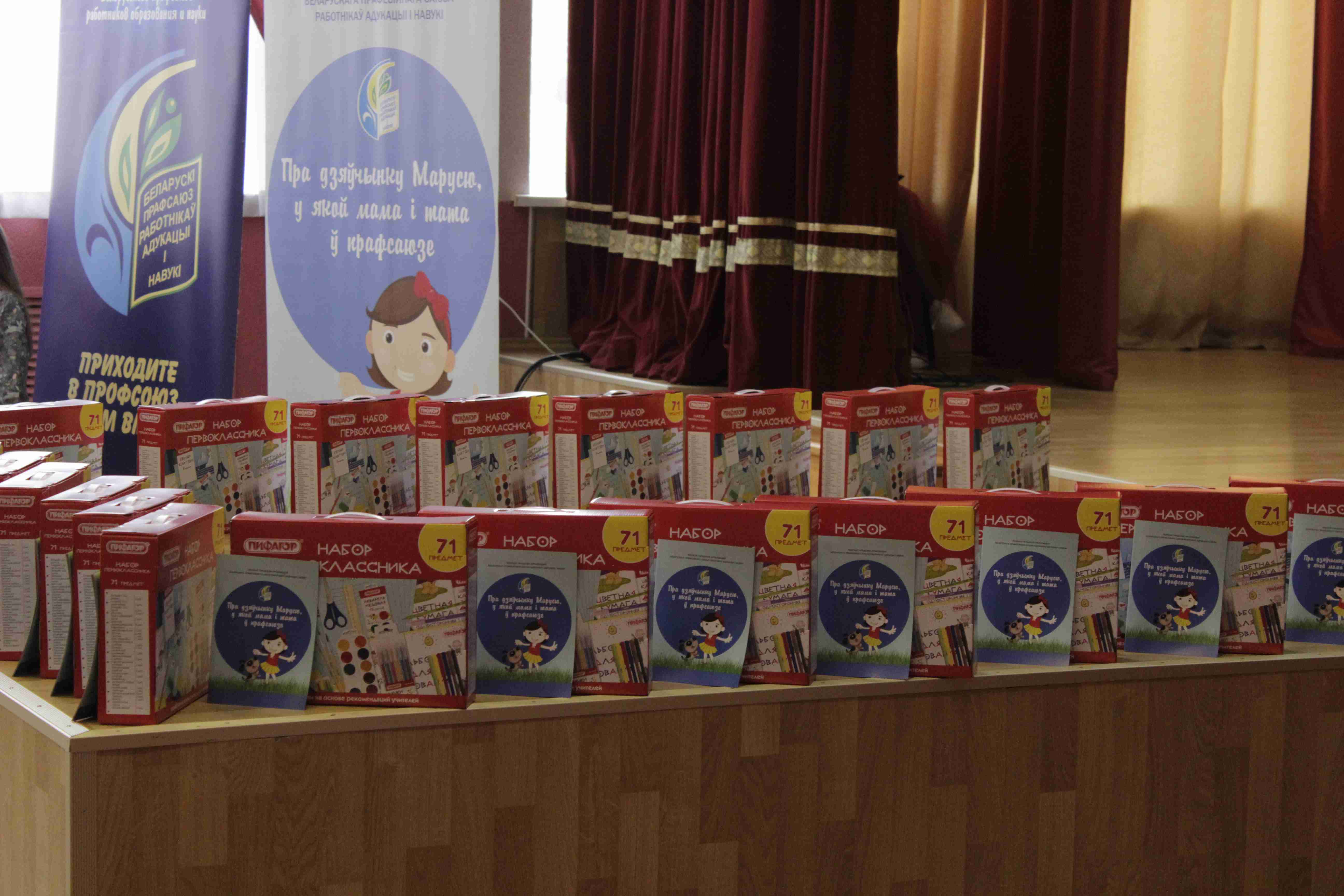 В завершение мероприятия будущие первоклассники были приятно удивлены: ребята получили свой первый портфель и книгу «Пра дзяўчынку Марусю, у якой мама і тата ў прафсаюзе».