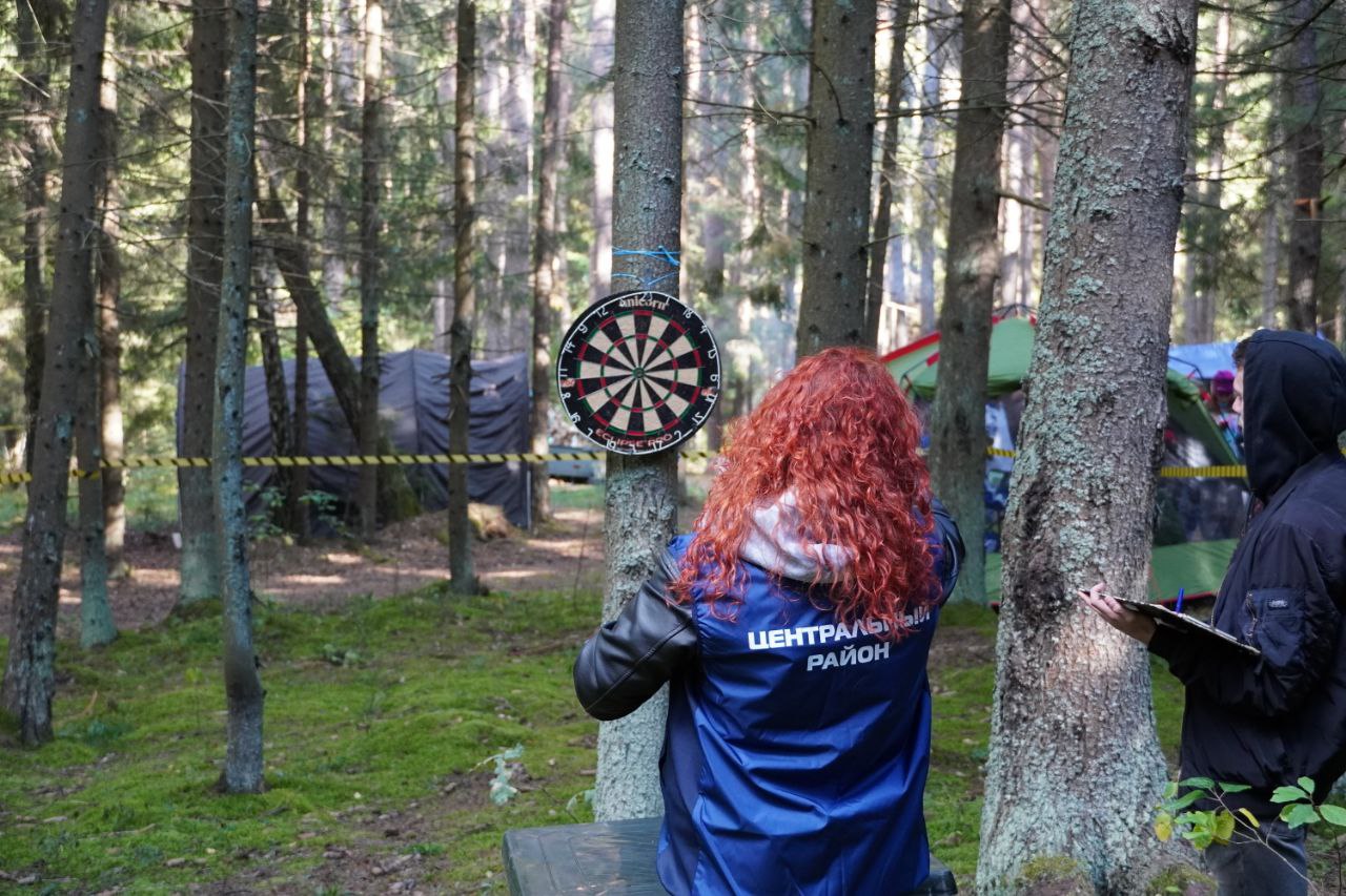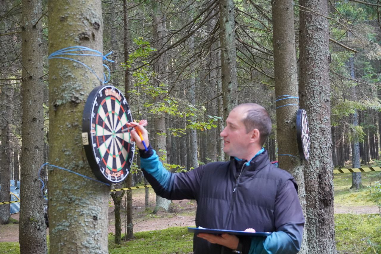 Открыли туристический слёт соревнования по дартсу среди начальников управлений по образованию, руководителей учреждений образования и председателей профсоюза.