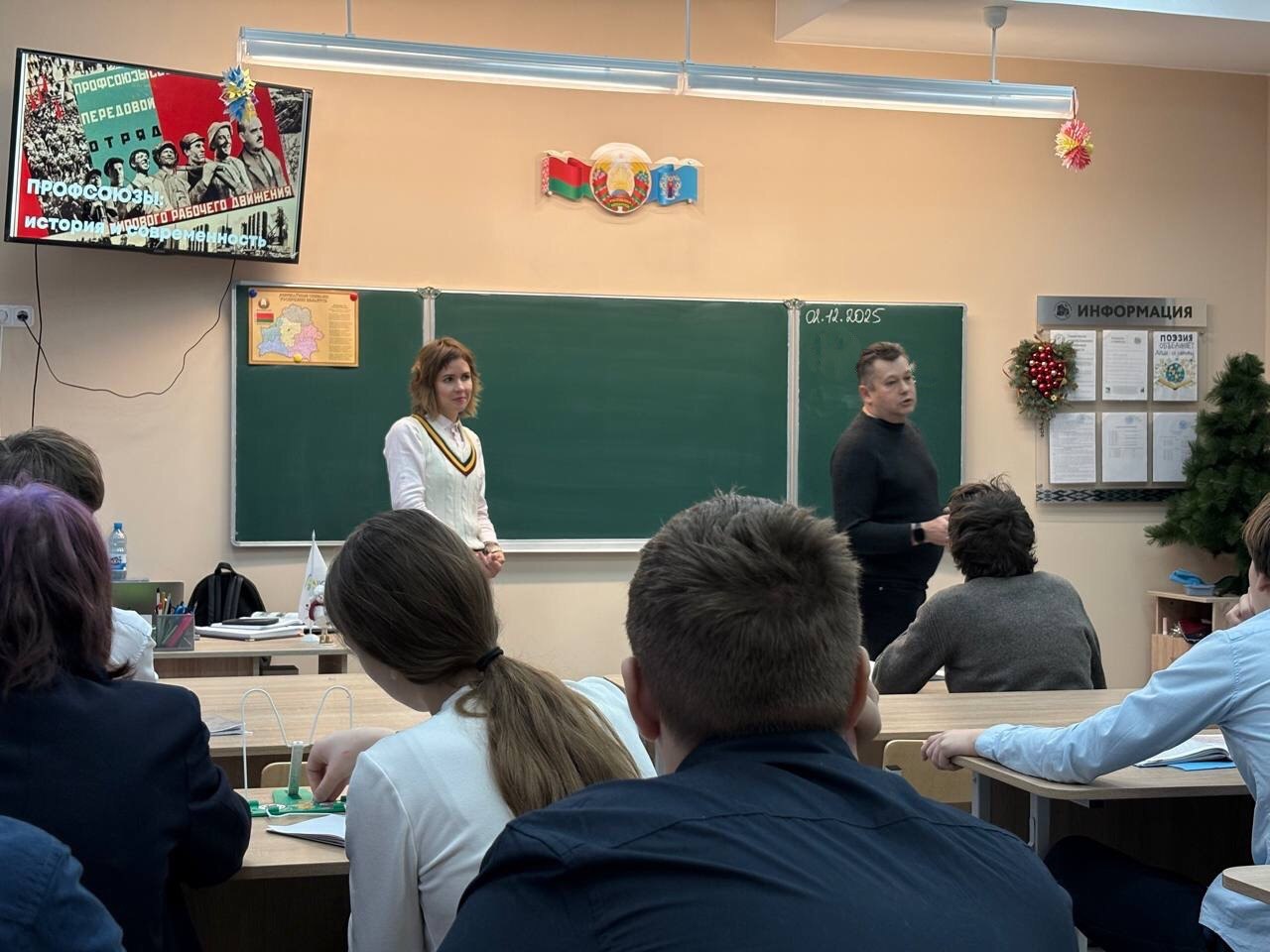Урок прошёл в форме живой диалоговой площадки, где ребята приняли активное участие. Такой формат помог им понять ключевые этапы развития белорусского профсоюзного движения, его особенности и перспективы будущего.