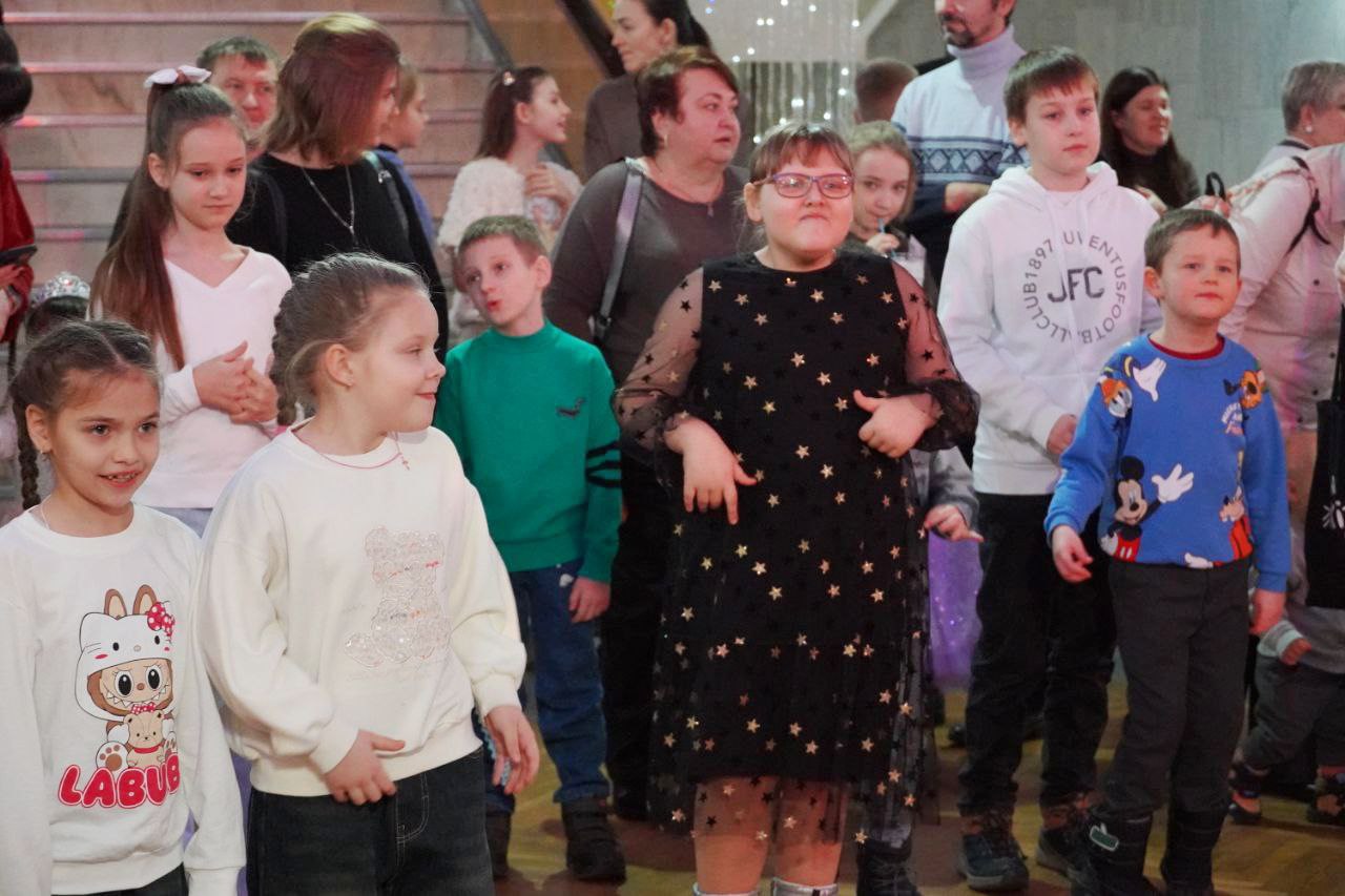 Сегодня старт акции был дан во Дворце культуры ветеранов, где для детей работников учреждений образования города прошло новогоднее представление "Заколдованный дом", организованное МГО.