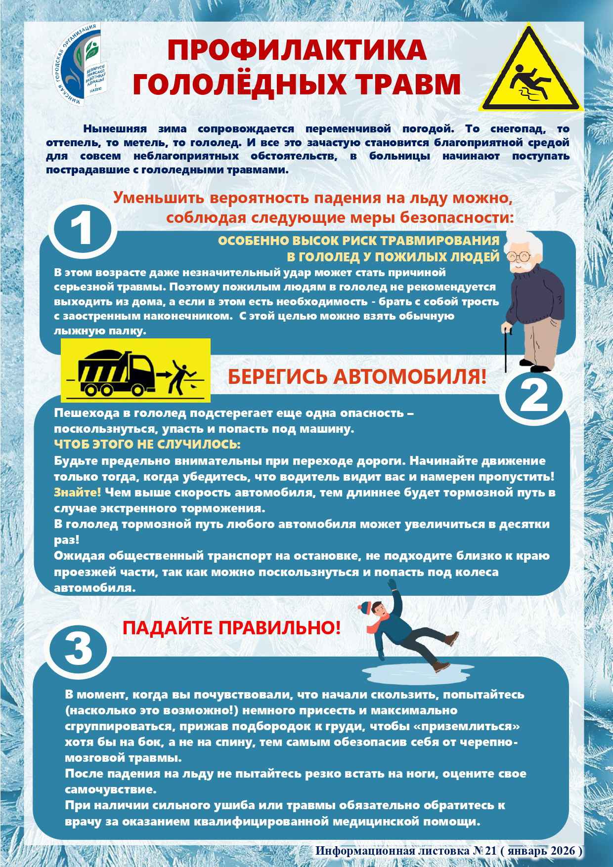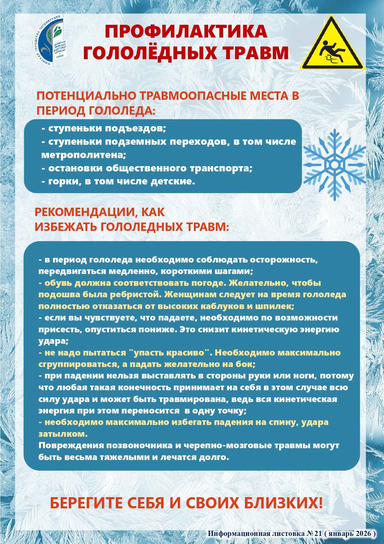 Предлагаем к использованию информационные листовки по профилактике гололёдных травм.