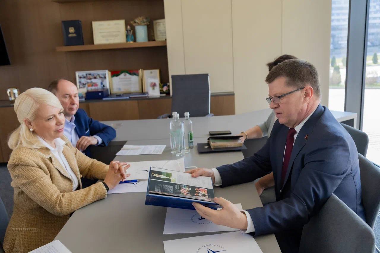 Председатель Федерации профсоюзов Бelаруси Юрий Сенько и руководитель Белорусской ассоциации гимнастики Елена Скрипель провели встречу, посвящённую вопросам развития детского спорта в таких направлениях, как художественная и спортивная гимнастика, акробатика.