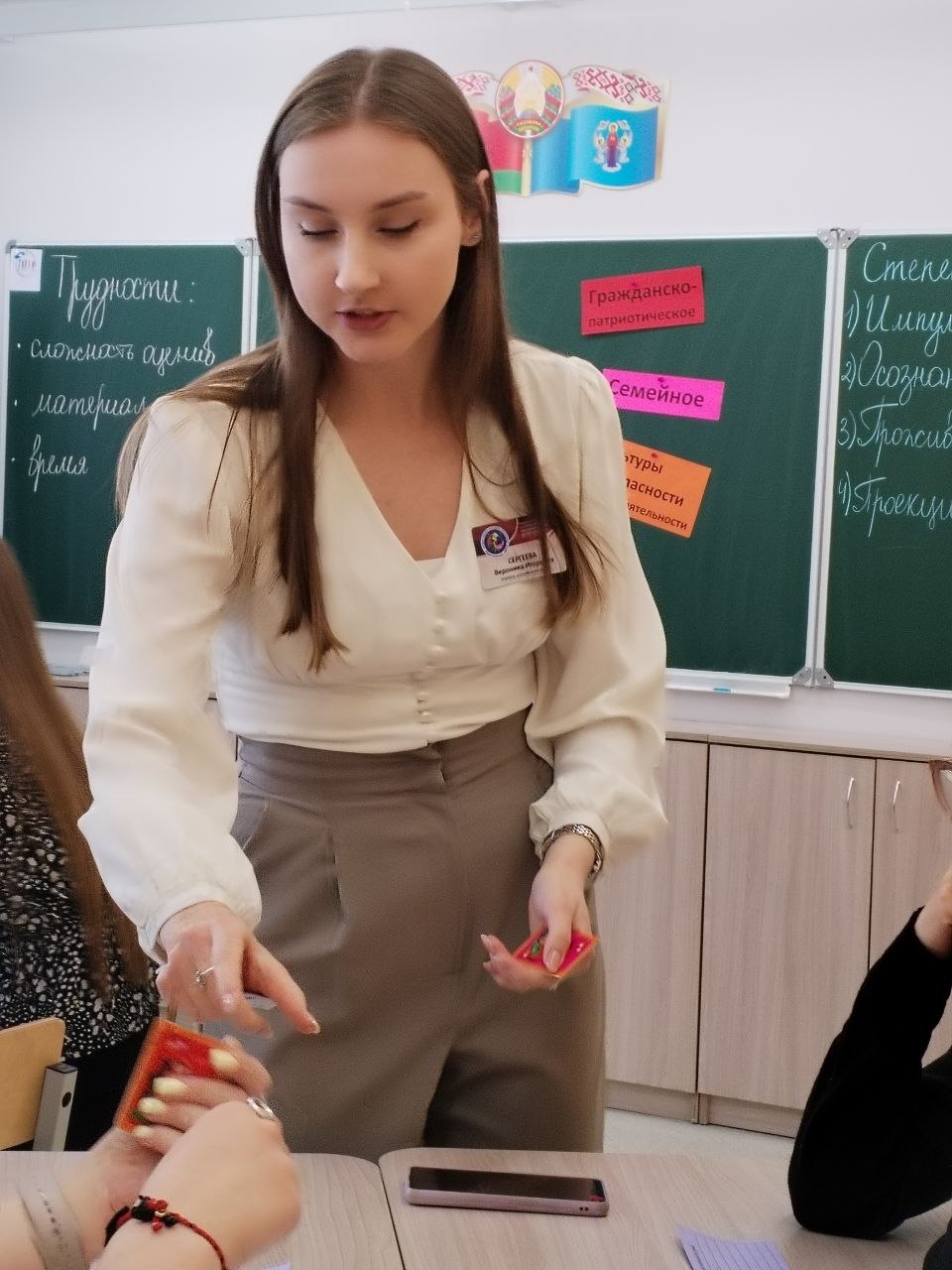 ✔️ Сергеева В.И. (учитель английского языка СШ № 52 Фрунзенского района) обучала использованию интерактивных приёмов для реализации воспитательного потенциала урока.