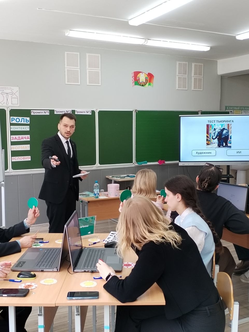 ✔️ Барановский П.В. (учитель химии СШ № 53 Советского района) учил педагогов применять ИИ для составления заданий, способствующих формированию функциональной грамотности.