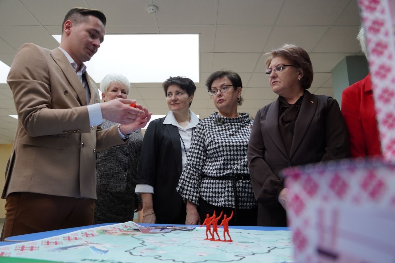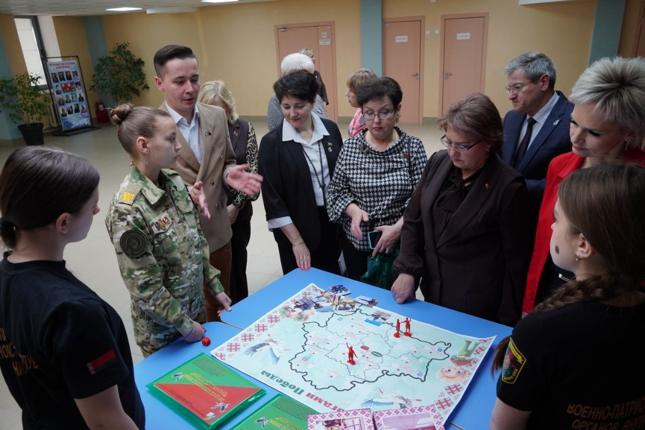 Руководитель по ВПВ Евгений Василевский презентовал проект «Дорогами Победы», который направлен на патриотическое воспитание, увековечение памяти героев. Вниманию гостей была представлена настольная игра с маршрутами выездных экскурсий по местам боевой славы.